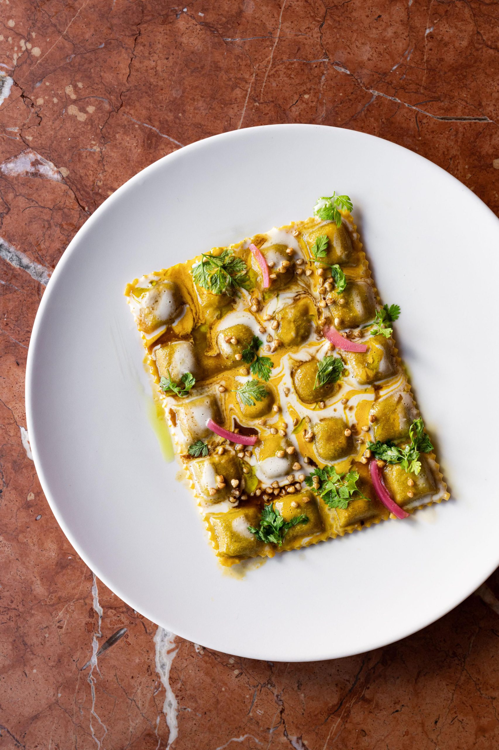 Porté par le talent du chef Denny Imbroisi, ce restaurant capture tout le charme de l’île d’Ischia, sublimé par la vision du duo d’architectes Studio KO. Teintes solaires, matières brutes et textures terreuses composent un décor à l’élégance italienne affirmée. L’ambiance se décline en plusieurs espaces, chacun dominé par un majestueux comptoir en marbre italien, tandis qu’une vaste terrasse, enveloppée de verdure méditerranéenne, offre un refuge intime et ensoleillé.
