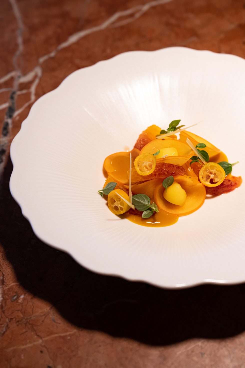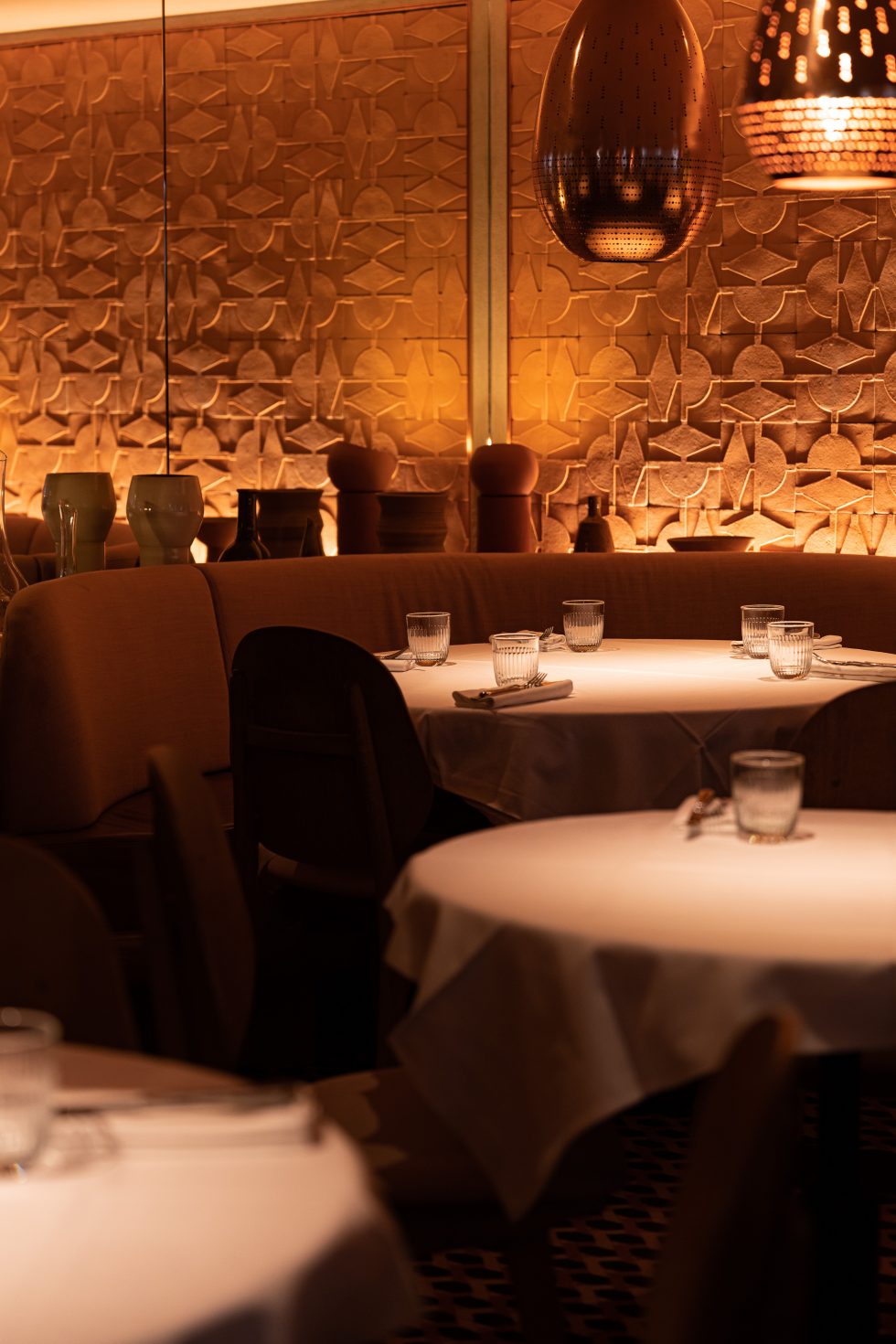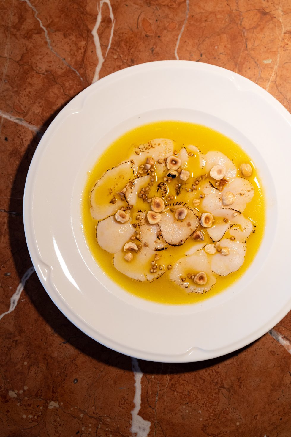 Guidato dal talento dello chef Denny Imbroisi, questo ristorante cattura tutto il fascino dell'isola d'Ischia, esaltato dalla visione del duo di architetti Studio KO. Tonalità solari, materie prime e texture terrose creano un arredamento dall'eleganza tipicamente italiana. L'ambiente è suddiviso in più spazi, ciascuno dominato da un maestoso bancone in marmo italiano, mentre un'ampia terrazza, immersa nel verde mediterraneo, offre un rifugio intimo e soleggiato.