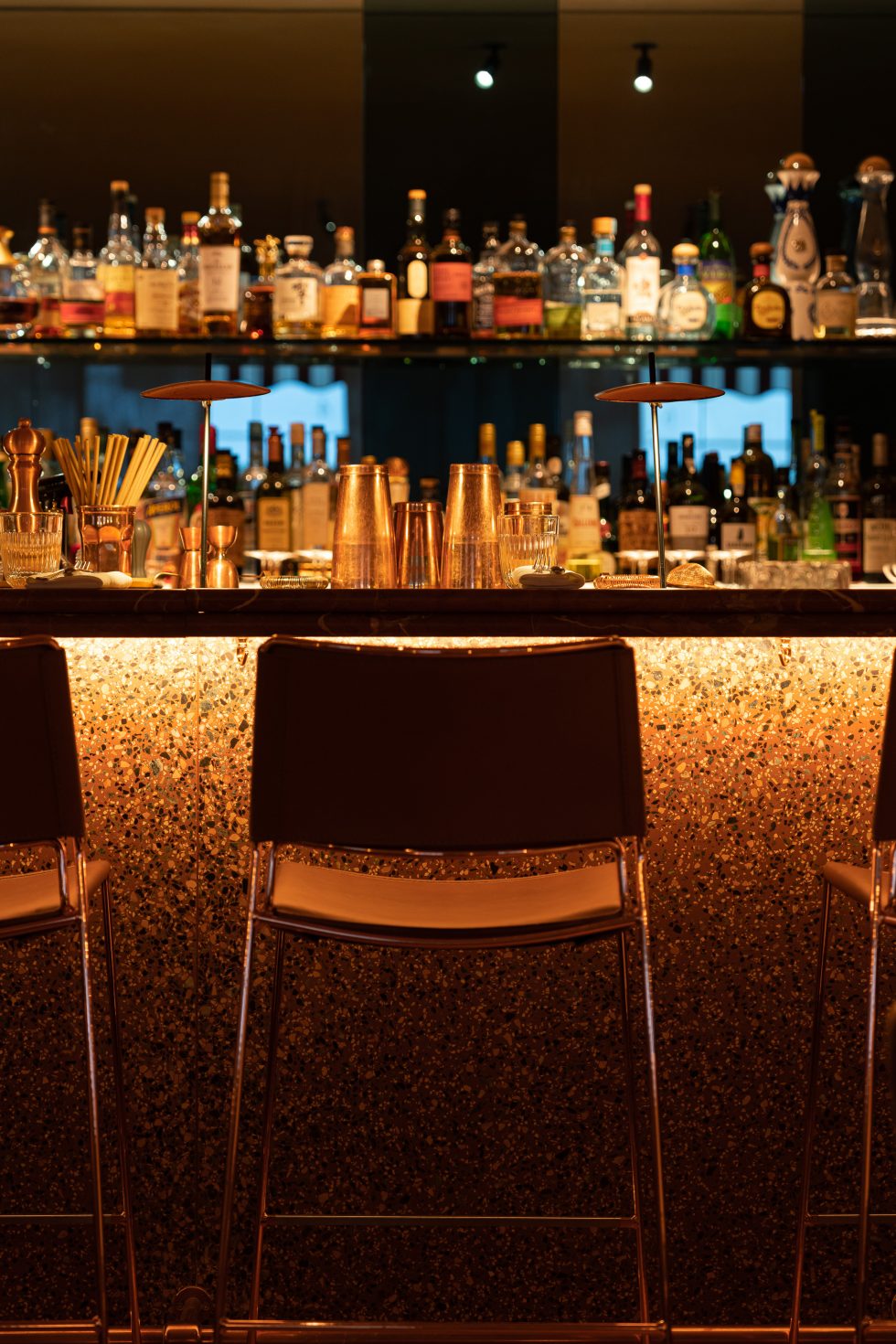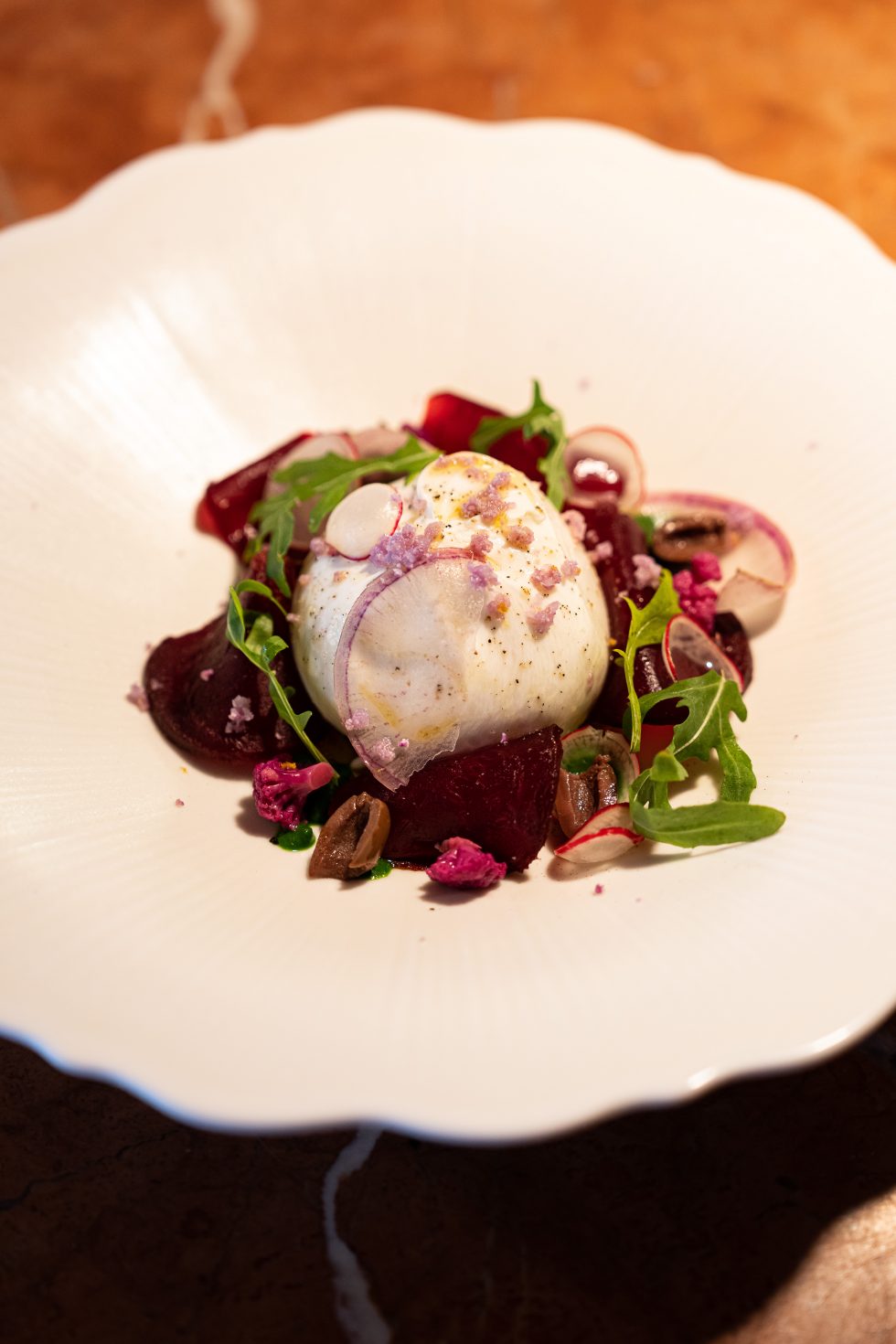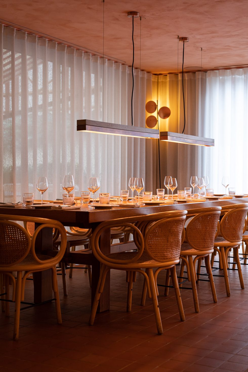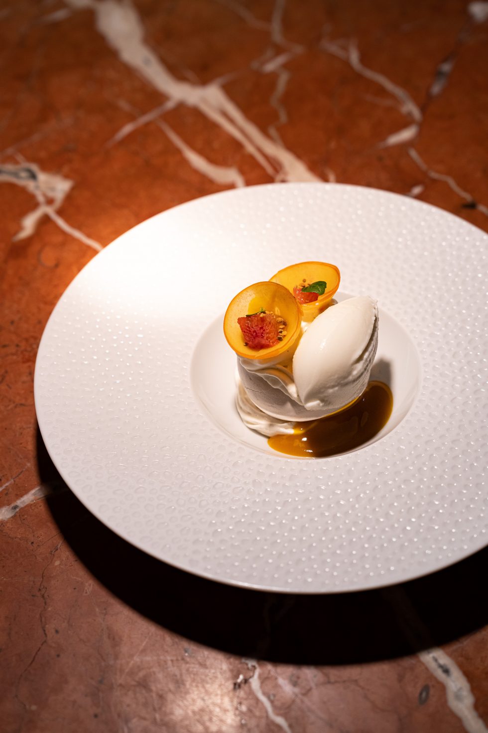 Guidato dal talento dello chef Denny Imbroisi, questo ristorante cattura tutto il fascino dell'isola d'Ischia, esaltato dalla visione del duo di architetti Studio KO. Tonalità solari, materie prime e texture terrose creano un arredamento dall'eleganza tipicamente italiana. L'ambiente è suddiviso in più spazi, ciascuno dominato da un maestoso bancone in marmo italiano, mentre un'ampia terrazza, immersa nel verde mediterraneo, offre un rifugio intimo e soleggiato.
